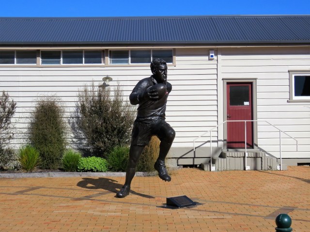These days, Te Kuiti prefers other branding removed from its railway history. From the north, it declares itself as the shearing capital of the world which is a fair indication that its farming history lies in sheep, not cattle. From the south, however, it lauds its most famous son – Colin Meads. He was one of our most revered rugby players. I always notice this sign and finally, in the interests of research, I turned off the bypass to go and find the statue. It was a little… smaller than I expected. But I am not a follower of rugby.