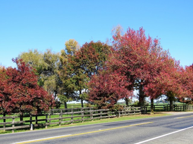And so to the Waikato where the landscape becomes quite tame and managed again (dairy and equestrian country) and the autumn colours are beautiful at this time of year. Being inland, they get cooler nights and the sharp drop in temperatures which triggers deciduous trees to change colour. The roads are straighter, wider and better formed as befits the sharp increase in traffic density. From here, I concentrate more on safely negotiating the heavy traffic than in observing the passing countryside.