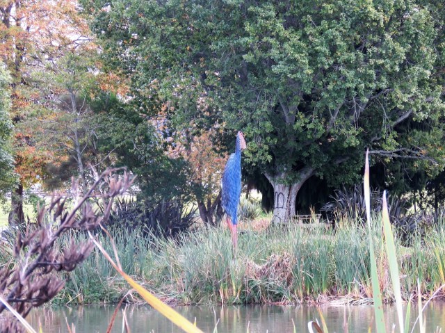 To be honest, I like the giant pukeko in Otorohanga, the next town up the line, more though I didn’t get the angle quite right to show the scale. You have to go on the heavy traffic bypass to find this unexpected sight. The pukeko is an Australian swamphen. It is uncertain whether it introduced itself to these isles or whether it was brought here by the first Maori who arrived in canoes but its arrival dates back many hundreds of years. Today it is equally admired for its gawky character and remarkable survival skills and loathed for the destruction it can cause in gardens and in agricultural situations. We have a little pukeko colony in the North Garden and I like them for both their character and the fact that they live in the ornithological equivalent of a village and raise their young in creches where responsibility is shared amongst the adult birds.