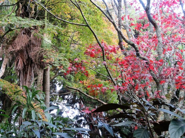 It is not just flowers giving colour. While autumn colour is patchy and extended over a long period of time because we move so gradually from late summer to autumn to winter, the maples and some of the prunus give a pretty display.