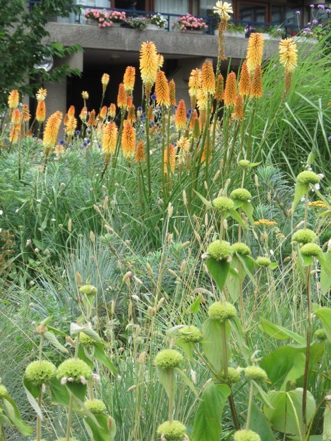 I used to have a Kniphofia in one of my gardens just like the ones you saw at the Barbican – not quite so phallic as some, but the same apricot/yellow colour graduating in the same way along the thinner bendier stems – just as in your photo! . I never knew that name of it, but always felt slightly ashamed of it as it was never as vigorous as other colours or varieties. Also I never knew where it came from – it was just there!
