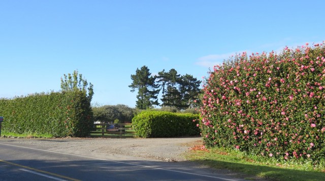 I also stopped to photograph a camellia hedge because a mass flowering camellia hedge is a rare sight for us in these days of the cursed camellia petal blight. This one is down the road from us (in a rural sense – maybe 5km down a different road entirely to the one we live on but still ‘down the road’). We used to have mass displays of larger flowered camellias in informal hedges but they are a thing of the past here. The plants haven’t gone; it is the flowering that is a memory. This particular hedge is in an extremely open situation, exposed to both full sun and wind from every direction. It confirmed for me that the extremely sheltered microclimate we have in our own garden has exacerbated camellia petal blight to be some of the worst in the world. Fungi thrive in a protected situation. It is a trade-off. That microclimate enables us to grow many other plants that would not otherwise thrive but at the expense of the japonica and hybrid camellia flowers.