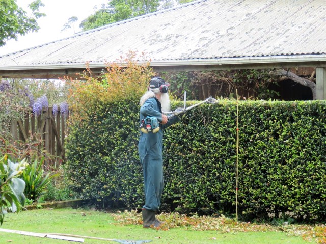 The picture of Lloyd working on the hedge made me smile, the contrast between his luxuriant hair and beard growth and his precision trimming of the hedges as you described.