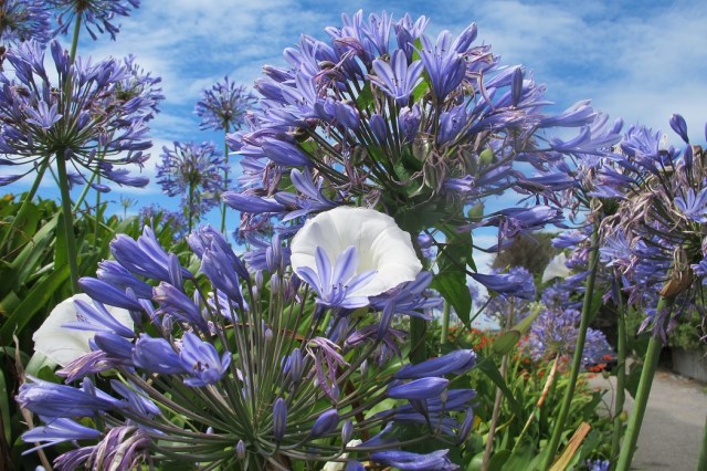 We like roadside agapanthus in our area. The sight of blue and white in abundance is a summer pleasure. It has become one of our wildflowers.