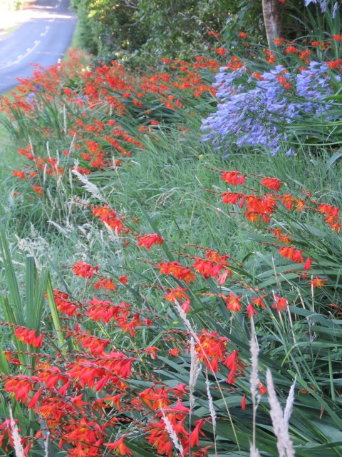 I get that some people don’t like agapanthus and that it isn’t the world’s greatest plant to inherit en masse in a garden. What I don’t understand is the level of visceral hostility, the intensity of emotion expended on a plant that is moderately benign and consistently blooms in summer. I don’t engage in these Twitter diatribes but I did want to ask what they would prefer to see – mown or sprayed roadsides bereft of flowering weeds? Did they think agapanthus worse than convolvulus, montbretia, woolly nightshade, fennel, chicory, kniphofia, hydrangeas, canna lilies, pampas grass or many other plants that escaped onto our roadsides? Why single out agapanthus?