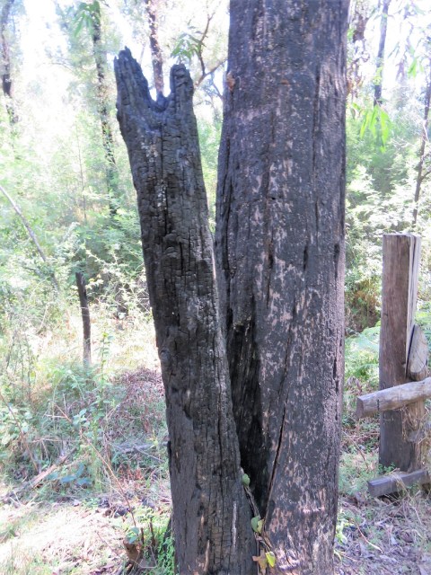 It is astonishing how quickly the Australian bush can regenerate – helped, daughters told me, by the fact that rains arrived not long after. That is by no means always the case but the area we were in was looking lush and green by Australian standards. “You can tell where the fires came through,” Canberra daughter said, “by the trees with black trunks with dense tufts of fresh foliage on short growths.” Those trees are mainly their native eucalyptus. We soon had our eye in for spotting fire damage and that was haunting.