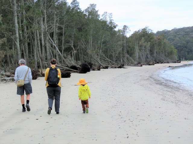 We went for a walk one grey, calm morning along a beach which seems to be part of a nature reserve by the Clyde River that reaches the sea in Bateman’s Bay.