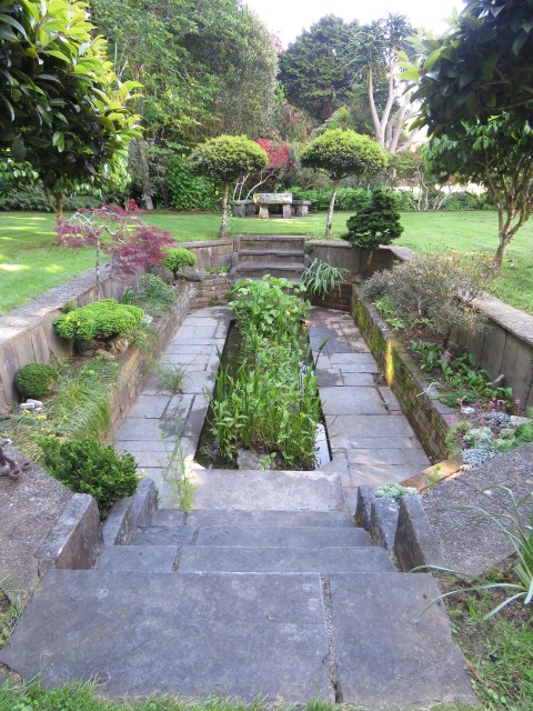 The mention of the large pond had me mentally picturing down in the park meadow where we have large ponds but for the life of me I could not think what constituted a sacrificial altar in that area. Further questioning ascertained that he was talking about the sunken garden and the altar was in fact the large stone millwheel that Mark’s parents repurposed as a garden table with stone benches to sit on.