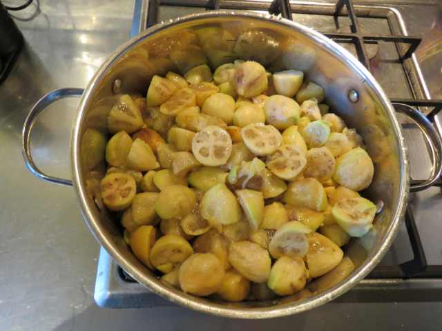 Sadly, the guava moth takes the joy out of the feijoa, rather. I am reminded of cutting up stewing apples infested with codlin moth, as a child. The fruit bit is lovely – I just had some with my breakfast muesli – but you have to brace yourself for the disgusting parts that are badly affected, and have to be thrown in the bin rather than the compost. Practically the only food in my bin – feels all wrong. One thing at least to go in that food bin when we get that here in Auckland. A great shame, that damn moth.