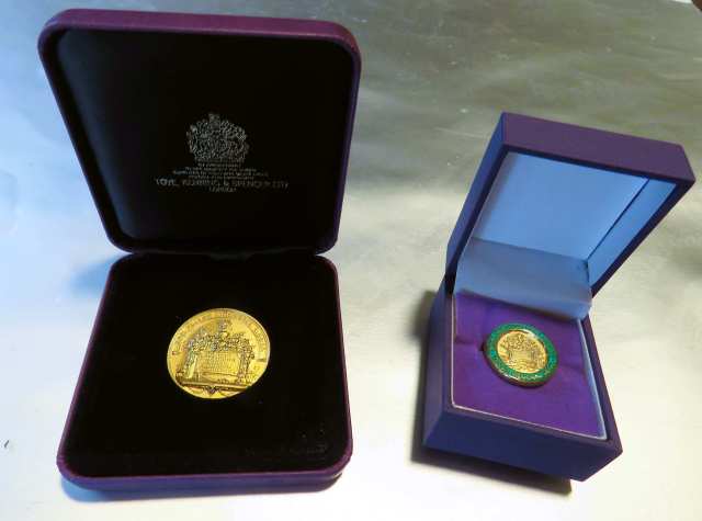 The purple boxes were discreetly impressive. One holds the medal while the other holds a golden and enamel lapel pin. They can go in the sideboard that holds his father Felix’s matching Veitch medal.