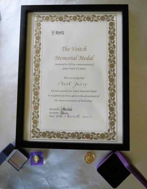No, it was the arrival of Mark’s Veitch Memorial Medal accoutrements. These were despatched by rather slow mail from London, on account of us not being able to travel to the official ceremony. Some of us remember when airmail was the expensive Fast Post option and the cheap alternative was slow boat. These days, airmail is a great deal more expensive but without the speed of delivery. Indeed, it can take as long as the old slow boat option. The certificate is impressive – a full A3 size. Oddly, because we are not given to public displays of such things, Mark felt it warranted hanging so it is destined to join the rogue’s gallery of family photos and pictures that adorn the private area of the spacious upstairs landing.