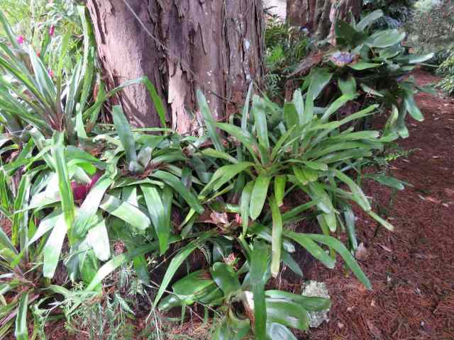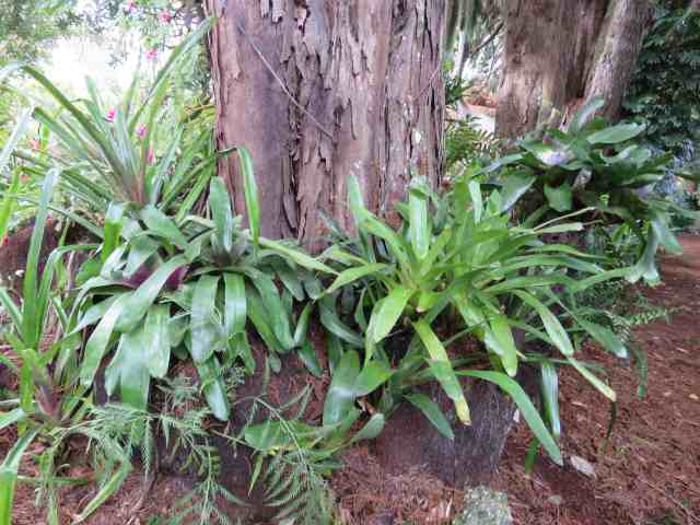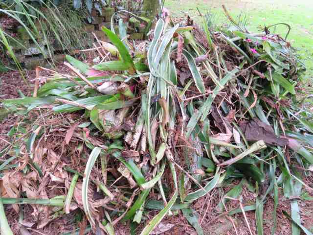 It is the bromeliads that generate most of the waste. Almost every bromeliad only flowers once and then the centre dies off – although the dying process can take more than a year or even three. While this is happening, the plant puts new shoots or pups out from the base of the old crown, or adjacent to it, and it is those new growths that will flower in the future. You can leave them to their own devices and the oldest parts will eventually die, dry and become dislodged but the clumps can get very congested and messy. I go through and remove the crowns that flowered last year.