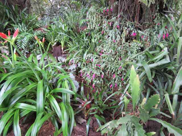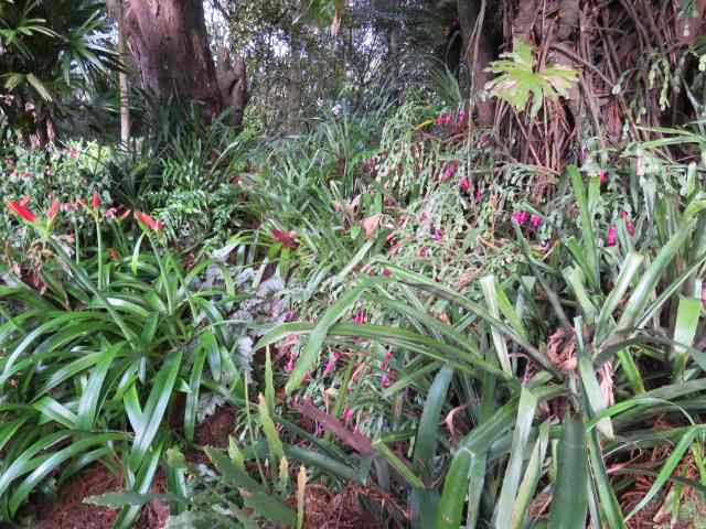 I remember my father had one of the pink cantered bromeliads as a pot plant in his office, I always thought it was a bit ugly. However they look so much better in your Rimu walk, I also noted a Christmas cactus with a great mass of flowers!! Such an interesting combination, rimu and subtropical plants I wish I could see it all, in great detail. Thanks for the photos Abbie a lovely start to Sunday as always! Elizabeth