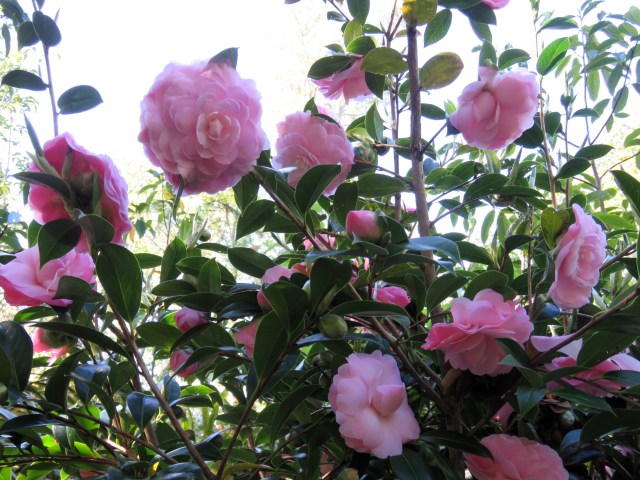 None of our Camellias are anywhere near old enough to need such drastic pruning to contain them yet, but it is good to know that they can be cut back to that extent if it is required. Interestingly we’ve found that ‘Mimosa Jury’ is consistently the least affected by petal blight of all the larger-flowered Camellias we grow. As I was reading your post I dashed outside to check our shrub to make sure my memory wasn’t failing me. At present it has the best part of 100 open flowers on it and a couple of hundred more buds that are yet to open and I was only able to find one small brown spot on a single petal. Even spent flowers have fallen off without any signs of blight on them. Camellia japonica ‘Dahlonega’, which is next to it in our border and also in flower at the moment, is not doing so well, with a lot of brown in evidence. We planted both of them in 2004. This year the petal blight affected our garden less than it has for many years, and it has been nice to see the Camellias looking more like they used to. The other interesting thing about our ‘Mimosa Jury’ is that it almost always has one or two flowers open from June onwards, but then as the weather starts to get a little warmer in October the flowers start to open in profusion and it keeps going like that well into December. This year spring has been at least 2 weeks later than normal for us and I suspect it could still be flowering on Christmas Day.