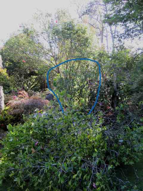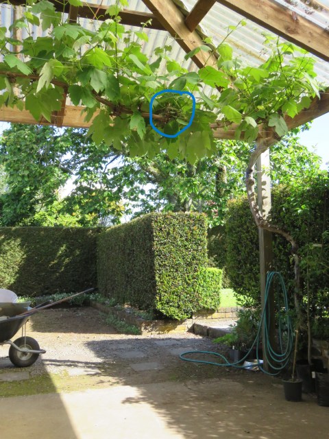 Cutting down has stopped because what remains houses a bird’s nest with babies. It may just be a common old blackbird but we are not willing to knowingly kill a family simply because we want to finish a task. Completion can wait a little longer until the branches are no longer occupied.