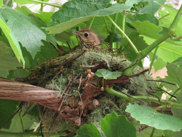 Talking of birds, Mama Thrush is bringing Zach and me delight although Ralph the dog is not so appreciative. She built her nest in the grapevine that grows beneath the verandah on the front of our shed which happens to be our main seating area when Lloyd and Zach are here at work. Her early anxieties appear to have faded and she has become accustomed to humans below. We can co-exist.