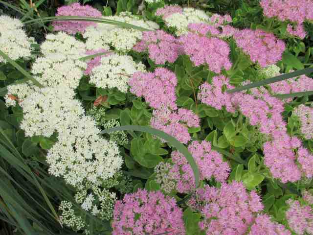 I am pretty sure the large-leafed miscanthus came from you in the first place. Those sedums are in relatively heavy soil which never really dries out. I wonder if they prefer a bit more moisture? Autumn Joy is my least favorite sedum but it is a good performer. Interesting that Chelsea chopping may work well on hydrangeas. I will follow your experiments with interest!