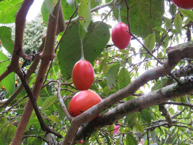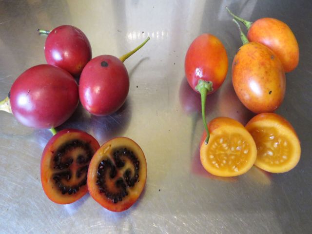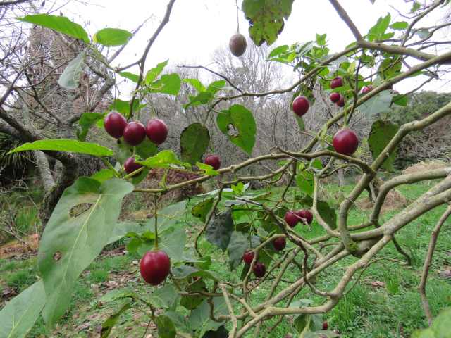 Tamarillo*** are what the oldies amongst us may remember as tree tomatoes, a South American fruit renamed by in this country by a fruit marketing board, just as we renamed kiwifruit from China. Botanically, it is Solanum betaceum and the solanum tells you it is in the same family as tomatoes and potatoes, which means it is frost tender. This is not a plant for everybody, but for those who can grow one, it is worth it, fruiting as it does through the depths of winter.