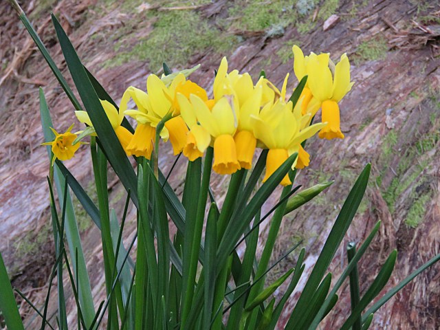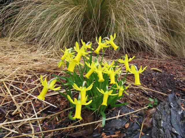 The classification of narcissi is a complicated business and there are many different species and groups. In our climate, we have most success with the cyclamineus types, often characterised by swept back petals. The other advantage of keeping to dwarfer varieties is that their foliage is smaller and finer so they die off more gracefully, rather than the spent foliage flopping down and smothering everything around them.