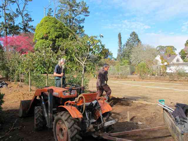 So it was Mark’s vision and his and Lloyd’s hard work that saw large plants going into the new ground in the spring of 2014 and autumn of 2015. We already had the plants growing in a field on our property across the road. They were our original stock plants from when we first released Fairy Magnolia White and they were trained to a strong central leader or trunk. It was no mean feat digging them and getting them across the road and planted but Mark and Lloyd were 10 years younger then. As an aside of useful advice, as soon as they were planted, Mark removed about a third of the foliage, which seemed brutal at the time but was all about reducing the stress on the plants after transplanting.
