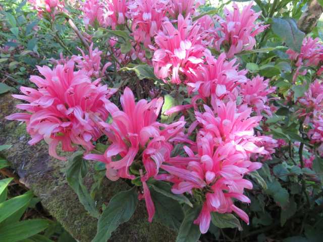 It is satisfying when a plan comes together and this particular border has been giving me pleasure this week. It is very pink and not necessarily a shade of pink that I love but the combination of the piped icing-like kalmia, Flower Carpet roses and pink candlewick flowers of the Justicia carnea works.