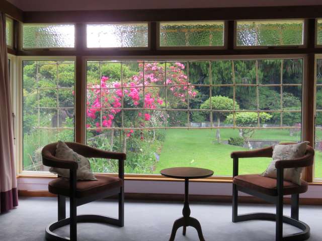 When Mark’s parents built the house in 1950, they set about creating picture views from every window. Over the years, we have had to work hard on this particular view, despite the solid structure of the sunken garden being the central feature. It was once a froth of old roses. Mark’s mother loved old roses but in the time since the area was first planted, the huge rimu trees (Dacrydium cupressinum) along the back have doubled in size, their roots have reached out a similar distance and other trees have grown, meaning the area is no longer open and sunny.