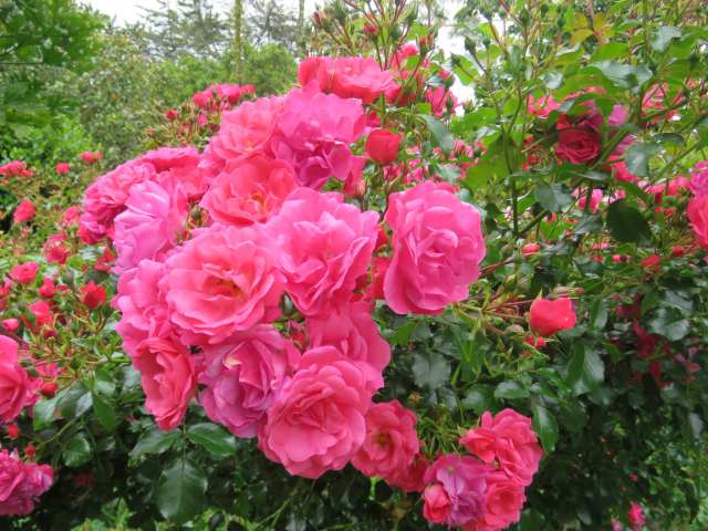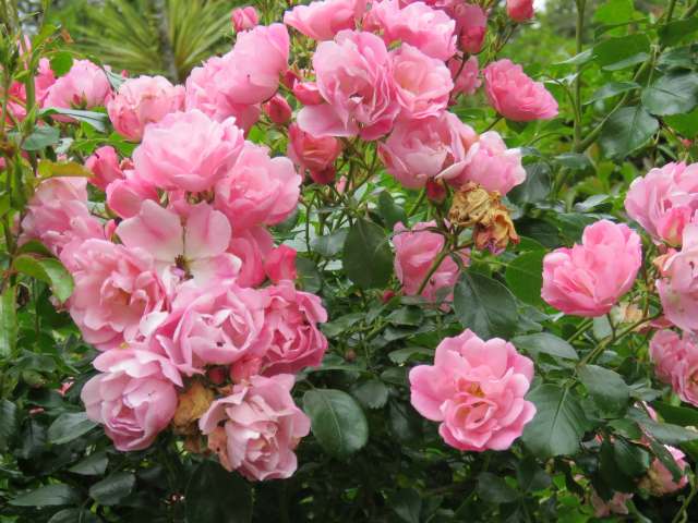 The froth of pink from the shrubs in that border is very attractive at the moment. We have the same problem as you with roses and over the years have learnt that very few stay looking good for more than a few weeks. Almost all the shrub roses have been removed, but almost all the climbers and ramblers have stayed looking good, especially ‘Wedding Day’, ‘New Dawn’ and ‘Ghislaine de Feligonde’. Rugosas do really well here too and almost all the Flower Carpet roses: pity they don’t have scent to go with high health. Sadly we’ve lost our ‘Apple Blossom’ plants, but Flower Carpet Scarlet does best of all of them in our garden and has grown huge, plus layered itself to produce extra plants for free.