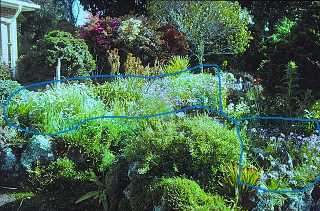Postscript: While thinking of weeds, I was amused to find this low-grade photo of the rockery, taken in 1993, so 32 years ago. The blue – you are looking at the blue which I tried to bring up with a filter and then highlighted. Most of that blue is the Geissorhiza – probably G. aspera, seen here at its worst. To this day, I am still digging out every tiny bulb that germinates and grows to the point where I can identify it. Mark’s father, who planted it and then deeply regretted it, took to painting it with weedkiller and an artist’s paintbrush. I have even dug out and replaced all the soil in some of the rockery pockets with the worst infestations. Continued vigilance is all that stands between a well-tended rockery and a repeat geissorhiza takeover.