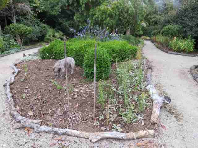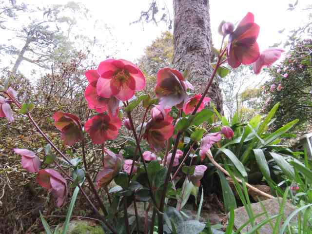 Zach moved on to the Court Garden and I moved into other plantings. In one border, I lifted all the hellebores and consigned them to the compost heap. We have fairly large plantings of hellebores and I wouldn’t be without H. argutifolius, H. x sternii and H. foetidus in particular, but I wouldn’t give you anything for most of the more common H. orientalis in our conditions. We have tried really hard with them, Mark has done controlled crosses and we have admired their merits in places with cold winters but I truly think they are over-rated in milder climates. Out they go. The only ones that I will give prime garden space to are the marvellous ‘Frostkiss’ series bred by Rodney Davey. ‘Anna’s Red’ and ‘Penny’s Pink’ were the first ones to be released here but there are more later ones and I aim to buy the lot now because they are so good. Lovely foliage, plenty of flowers held above the foliage and they all seem to be sterile so not producing endless seed to be weeded out. I dug my plants – I see I have 7 different varieties already – divided them and consolidated them into one border where they have prime position with spring bulbs. I expect them to take a year or two to re-establish well but my hopes are high.