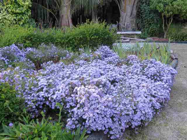 This blue aster has a name but I have to look it up every time because who can remember Aster novi-belgii ‘Professor Anton Kippenberg’? Even worse was when I discovered that the plant has now been reclassified and is no long an aster but… wait for it… is now Symphyotrichum novi-belgii ‘Professor Anton Kippenberg’. Too much, I say, too much. It has gorn forever from the Wave Garden, replaced by a compact blue salvia we had elsewhere and blue bearded iris.