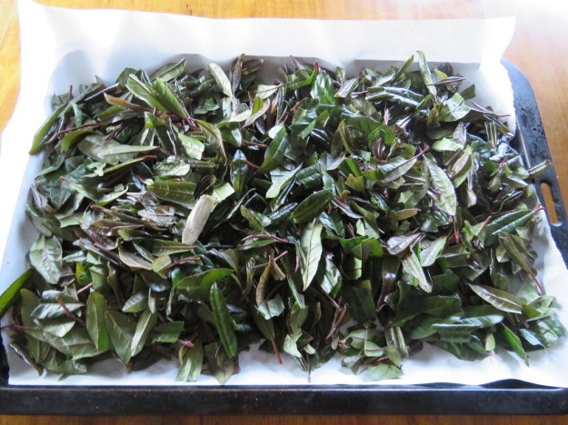 With just one sizeable bush of the tea camellia, C. sinensis, the harvest was never going to be huge but after fiddly-faddling with a few minor efforts in recent years, I was determined to get as much as I could this year. I now have considerable respect for the tea-pickers of Sri Lanka and India but I assume one gets faster with practice. Mark tells me he has another three plants ready to be put out into the garden so we should, with more attention, be able to increase the harvest, though we are unlikely to achieve self sufficiency.