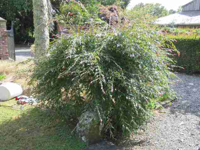 Camellia minutiflora is a dainty little species with the prettiest of tiny flowers and naturally arching growth which we like enough to have maybe half a dozen specimens through the garden. Normally, we try and prune in early to mid-spring but, as I cleaned up the border in which this one sits this week, I could not ignore that it needed some work done on it, albeit in the height of summer. In so doing, I cut a lot of flower buds off but it has so many that it doesn’t matter and the form is more important, really.