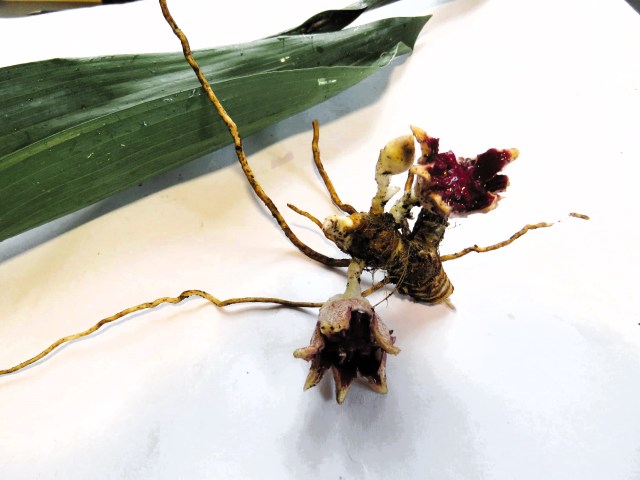 The flowers could be described as curious or, equally, underwhelming. They come up from the rhizome on stems about 1.5cm high and are a fleshy looking cup with a starry burgundy inner about 2cm across. They are very small. And shy. Interesting but never showy.