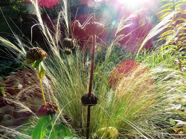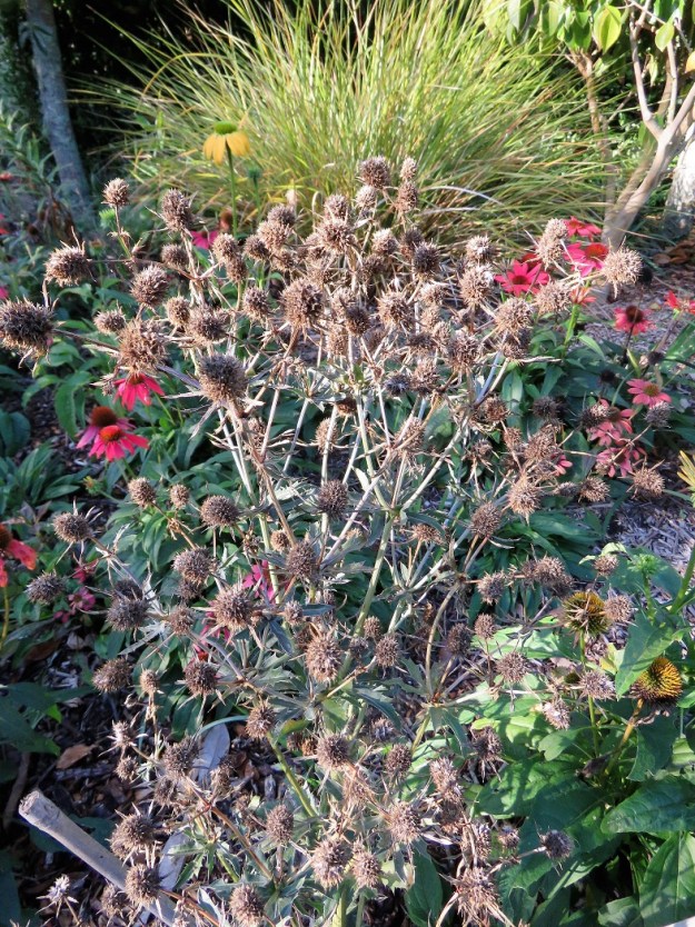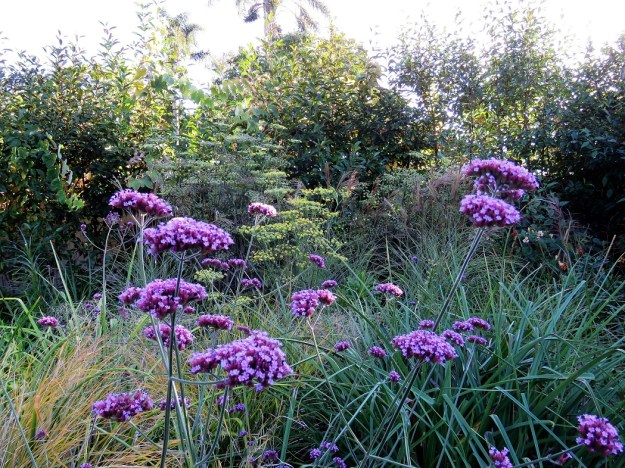 I have finally found a place where this large yellow salvia can grow with sufficient space and it is a late autumn – early winter highlight. We have never had a name on this variety so if any readers can identify it for me, I would be grateful. It stands a good two metres tall so it is a large plant to accommodate. *** Now identified as Salvia madrensis, thanks readers.