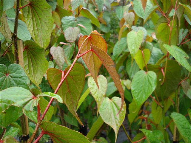 tetracentron sinensis – heart shaped leaves and pink new growth