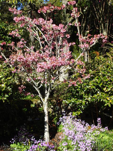 Prunus campanulata Felix Jury – this deep carmine red bloom on a smaller growing, narrow tree was released by Duncan and Davies and named for Felix by them because he was the originator of this selection. It is still the darkest campanulata variety we know of on the NZ market.