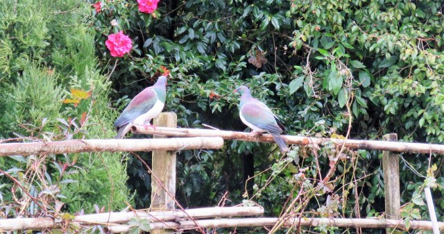 The birds love it. It is a favoured staging post, whether for Mark’s tumbler pigeons, our native woodpigeons – the kereru – rosellas, common old sparrows, tui and the rest. It has birds resting in it, surveying the lie of the land, almost all the time. It is not a feed source, it just gives a good view. There are plenty of other trees around and I am sure the birds will adapt quickly but I will miss the sight of them pausing there on their busy rounds.