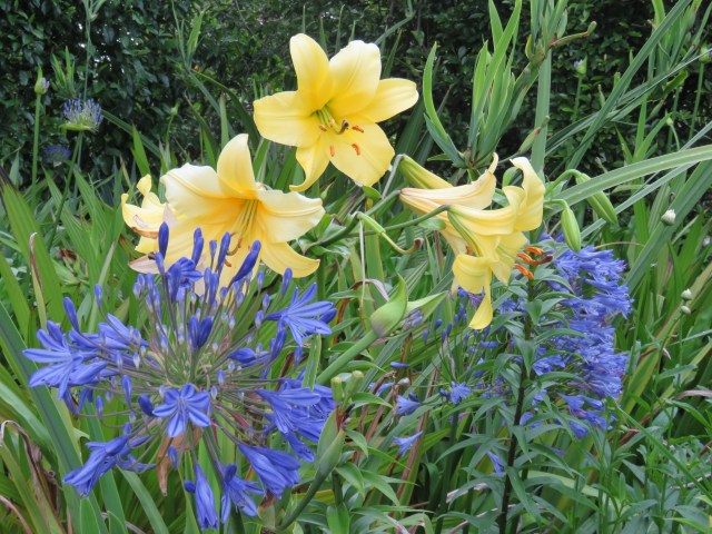 Their bulbs are enormous – larger than the auratums – and the stronger the plant is growing, the more flowers there will be. I see I have counted up to 18 in the past but the strongest growing stem this year is 14 flowers. I have interspersed them through the summer borders where some, at least, are held upright by other plants. I have to stake the others because the weight of the flowers pulls them over and they can be up to 2 metres in height. Their flowering season is maybe not as long as the auratums but they come into their peak earlier in the season. They are scented but not with that heady fragrance that hangs in the air like their big show-off auratum cousins. When they started life on the fringes of Mark’s vegetable garden, I used to cut them to bring indoors and they cut and hold very well. These days, I just enjoy them in the garden.