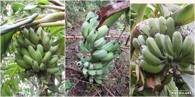 But Sunday dawned fine and dry which meant my usual cheerful disposition was restored. We cannot complain about an autumn which delivers us a daytime temperature of 24 degrees Celsius and night time temperature still well into double figures. Behold Mark’s pride and joy – his luverly bunches o’ bananas. Several lovely bunches. We are super marginal when it comes to growing bananas for tropical we are not. These are the only plants we cover for winter – festooned in protective shade cloth suspended on a giant bamboo frame.