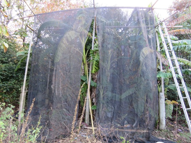 The so-called Chinese Windmill Palm (Trachycarpus fortunei) is also under threat of reclassification as noxious weed. While it has not proved a problem here in our garden, Mark has seen it seeding down and giving rise to a thicket of babies in the Nelson area. I have just found a photograph in the Encyclopedia of Cultivated Palms showing it naturalised in Switzerland. Plants with a climatic range from Switzerland to Nelson and Northland have scary potential. Trachycarpus fortunei is enormously popular throughout the world because it is generally hardy but with that tropical and exotic look so frequently sought by gardeners irrespective of nationality. The big advantage of trachycarpus is that you need both male and female plants to set seed so if female plants were culled, it would not be a problem. Our specimens in the garden here are male so no seed is formed. And Mark’s guess is that the seed is not spread by birds because it only seems to fall to the base of the tree and sprout there, which makes it much easier to contain. The seedlings can be mown off, grubbed out or sprayed. If it was spread by birds, we would hear a great deal more about it appearing all over the place in parks and reserves.