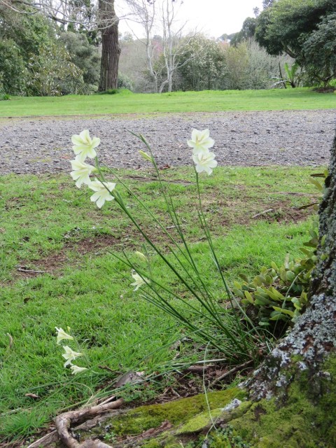 Last month belonged to red Hippeastrum aulicum. This month opened with Hippeastrum papilio. It has taken a few years but we now have plenty of this bulb, able to be counted by the score rather than single figures. It is available for sale and it is expensive to start with – probably around $25 or $30 a bulb. But it is not difficult to grow and it multiplies at a reasonable rate if you quietly lift and divide it every year or two, replanting into well cultivated soil with some compost added. Its flowers are large and showy. Its season was somewhat shortened this year with The Rains. It feels as though it has rained most days this spring. The magnolias and michelias did not appreciate the very wet season and were particularly disappointing. H. papilio tried to bloom and did well enough for me to get this photo. Alas, when I looked a few days later, even with their heavy texture, the blooms had largely sogged out and given up.