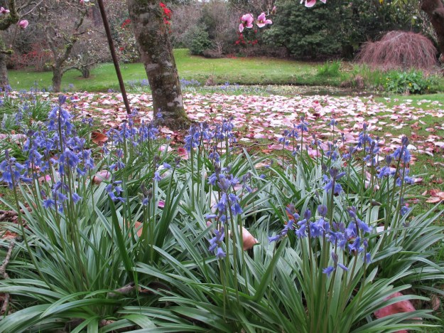 A word about white or pink bluebells. While the English bluebell can occasionally throw a white mutant, given the rarity of H. non-scripta in this country, it seems likely that all colour variants we have are either Spanish or hybrids. The whites and pinks are charming mixed with the predominant blues, making a pretty scene. Isolate them out by colour on their own, and they become a novelty plant. Bluebells, by definition, should be mostly blue. A display of only pink bells would look awfully contrived for this simple flower while a mass of white bells might as well be onion weed, really. That is my opinion.