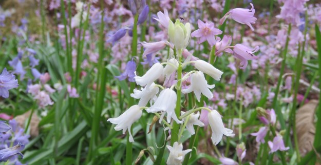 Now it is bluebell time. It appears that ours are all Spanish bluebells or hybrids. The pink and white variants are a bit of a giveaway. Ken Thompson in