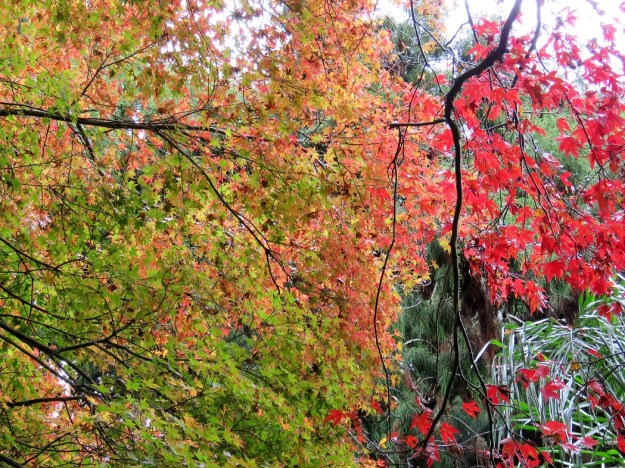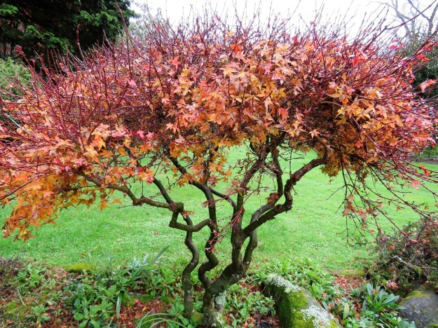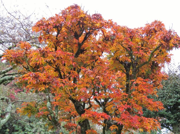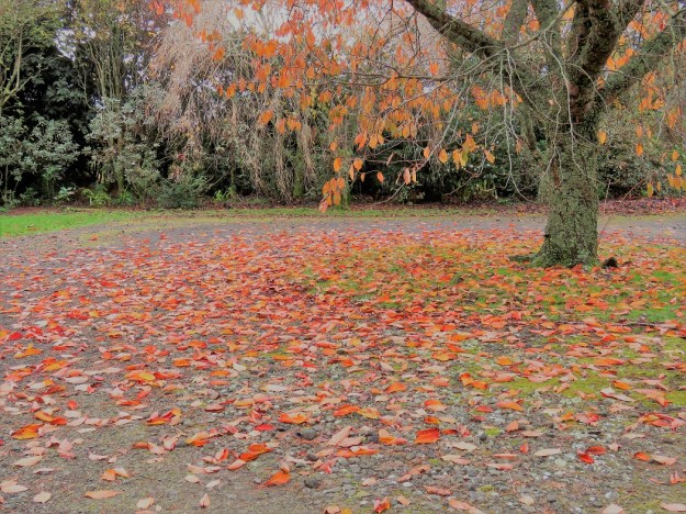 The maples and the flowering cherry trees produce many hues of orange and tend to colour in late autumn for us – or early winter as it is now. June usually feels autumnal for us, July is the bleakest month of winter and by August, we are bursting into spring growth and bloom. We really shouldn’t complain about a winter that is effectively about six or eight weeks in duration.