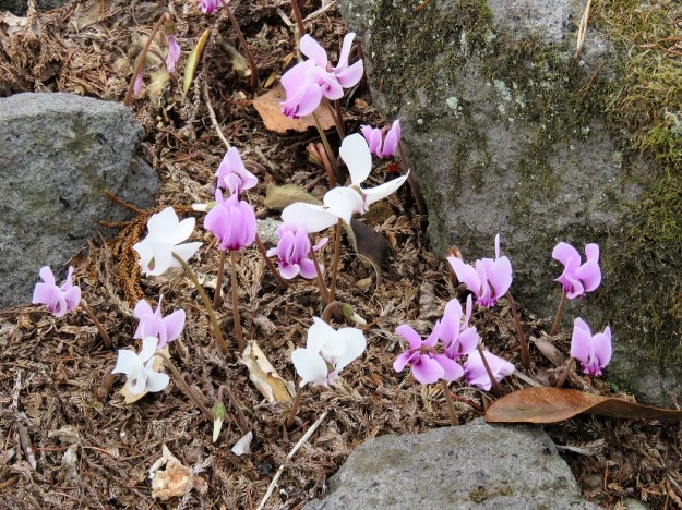 The autumn cyclamen are a different kettle of fish altogether. They really are a well behaved plant, flowering for months from mid to late summer through til late autumn and then putting out charming, marbled foliage. They seed down gently without becoming a menace and just get better as the years go by.