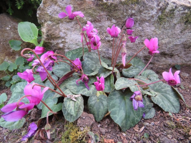 There is a world of difference between the dainty species and the big hybrids which are sold primarily as house plants. Those are mostly bred from C. persicum, which we also grow but in itself it is not a stand-out performer in our conditions. I am not a fan of the hybrids, even less so when they are used as garden plants. To my eyes, they lack the charm and refinement of the species. They have been bred for a different purpose and have flowers which are much larger, often in different hues and sometimes selected for novelty value in flower form. But that is all a matter of taste.