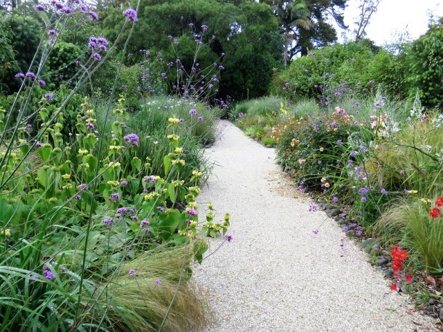 I think it is likely the contrast in our garden. We always maintain the house gardens – the area of close to two acres on the flat around the house which includes the summer gardens, the rockery, the Rimu Walk and the Avenue Gardens – to a weed-free, tidy state with areas that are quite sharply defined. The switch to the loose style of the park and the Wild North is very different and it is that contrast that makes it appear by design, not laissez faire management.