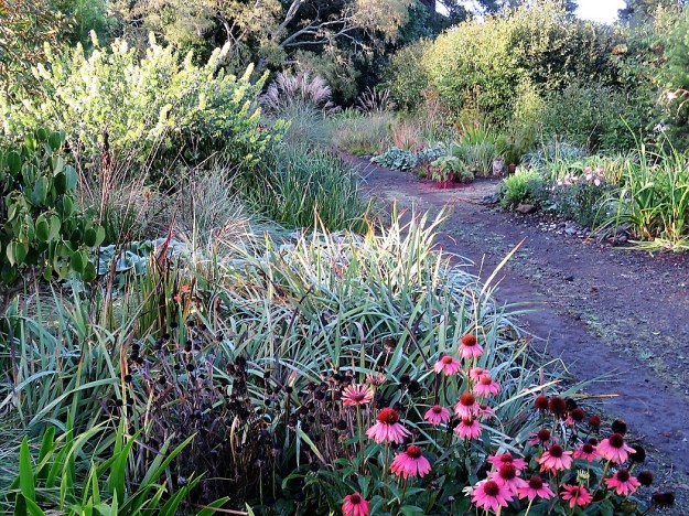 Time for a dig and divide, which Zach did this week. A perennial that has to be lifted and split every two to three years is on the high maintenance side and we don’t have many in that category. My friend, Sue, who leads the team of volunteers at the pretty Te Henui cemetery, told me she is culling plants that are too high in maintenance for their labour resources and this aster might fit that category. I must ask her for her latest list of culls. Fortunately I have Zach to carry out such tasks or I might be casting around for a less demanding plant option.