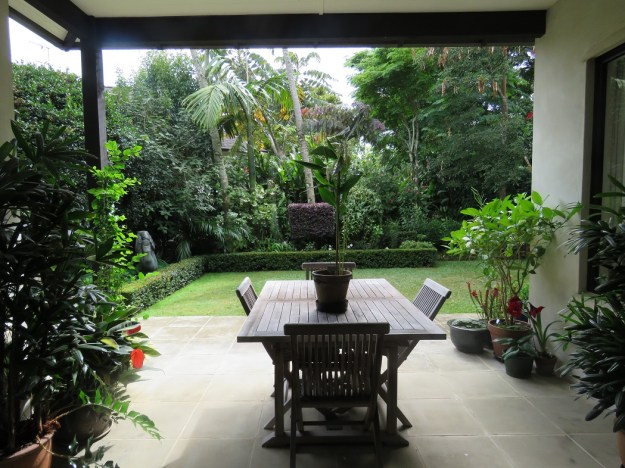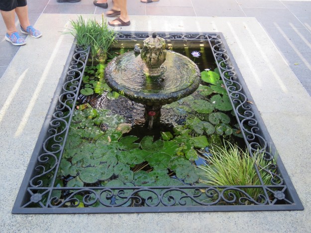 I will just offer you edited highlights, starting with this tiny garden (well, tiny by my standards) where the backyard pool was both pretty and thoughtfully constructed. In a very tight space where the water feature is within the outdoor entertaining area, safety is an issue and that outer decorative grill should give warning to most guests who may take a backward step without looking.