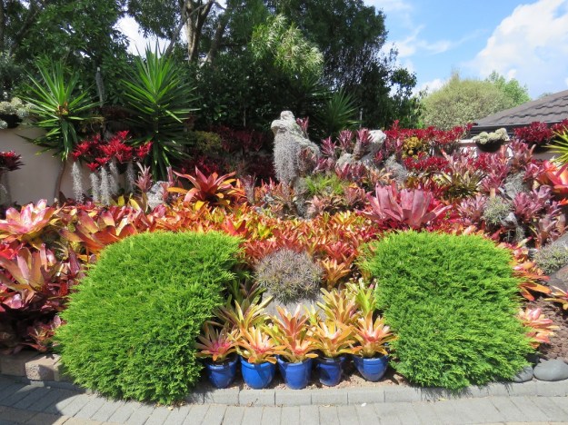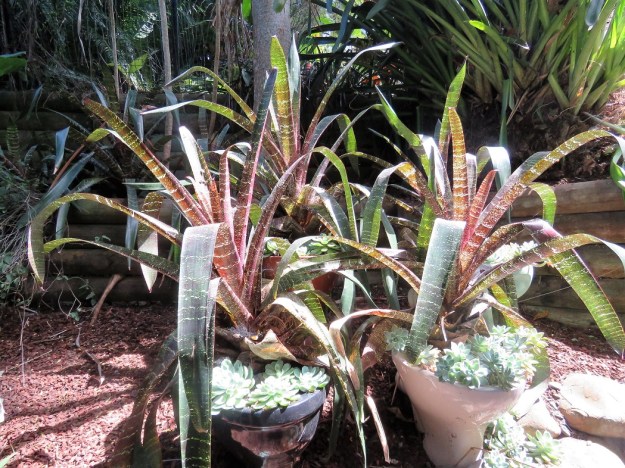 The light was too bright and the shadows too deep to do justice to this cluster of bromeliads but I particularly noted it because it was a counterpoint to the vibrant and bright use of bromeliads mentioned in the first post of these two. This was restrained and understated but maybe more charming for that.